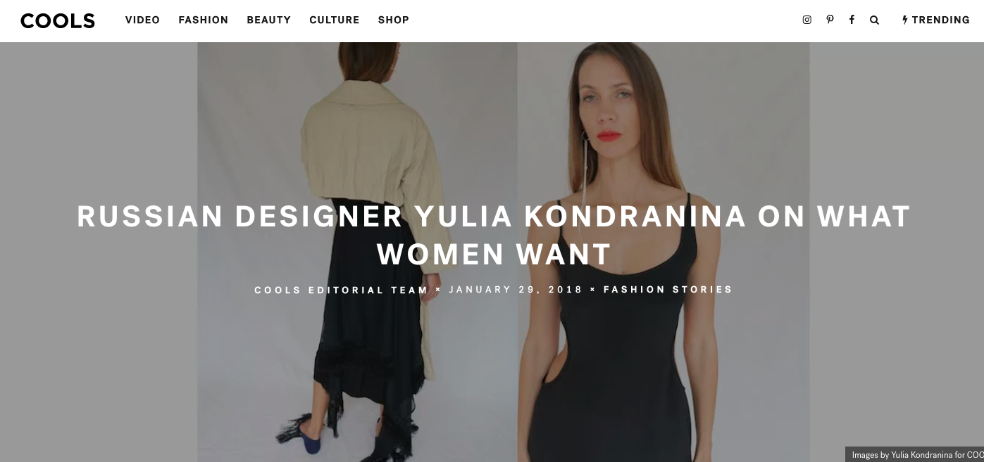 The Cools: Yulia Kondranina on What Women Want abigailsouthanFebruary 3, 2018February 3, 2018Uncategorized Post navigation PreviousNext View source Share this: Share on X (Opens in new window) X Share on Facebook (Opens in new window) Facebook Like Loading... Related
